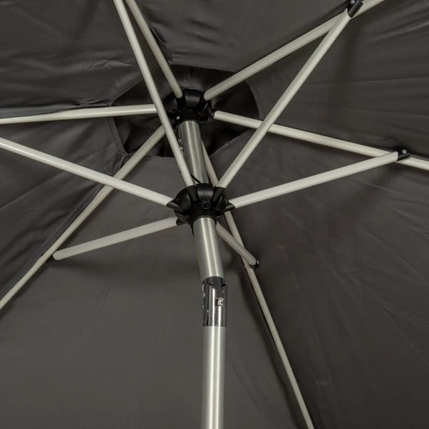 Featuring a sturdy and lightweight rust-free metal frame, the Royal Craft Brushed Aluminium 2.5m Crank and Tilt Parasol would make a stylish and practical addition to any garden. The crank and tilt system makes this parasol easy to put up and adjust to your preference.