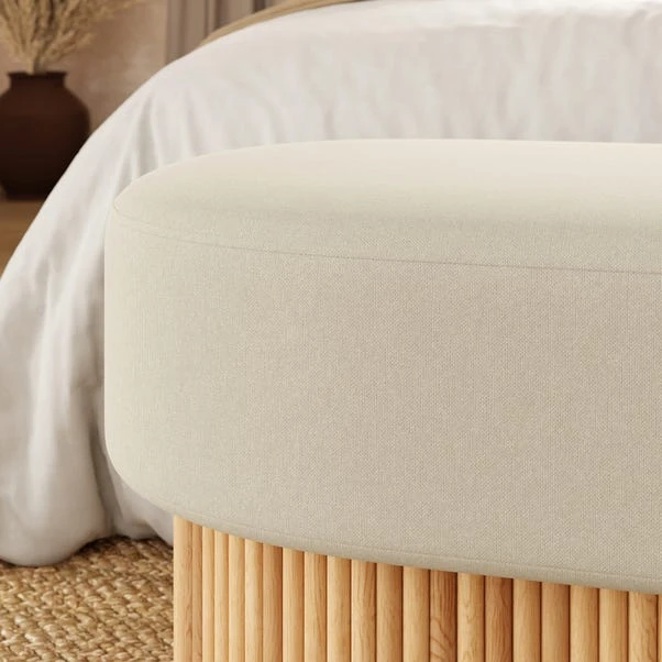 This elegant storage ottoman seamlessly combines style and functionality. Its rounded silhouette and fluted detailing bring a refined touch to any space, while the spacious interior offers a practical solution for keeping blankets, books, and other essentials neatly tucked away.