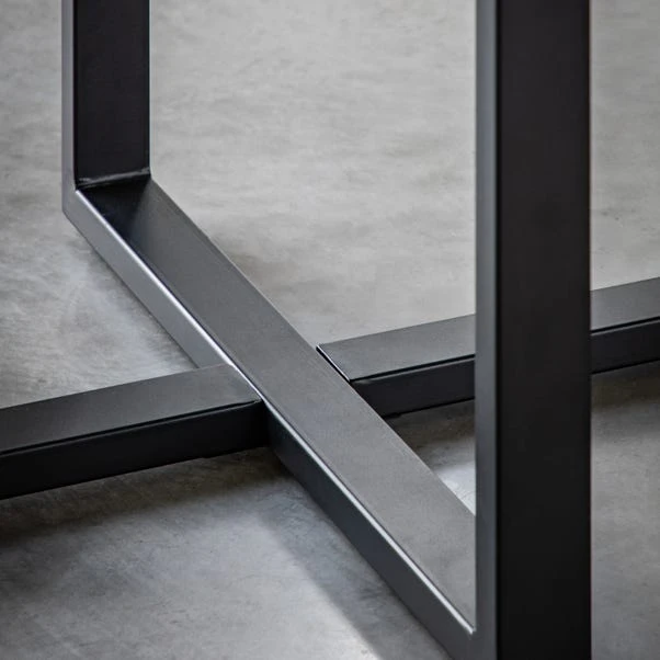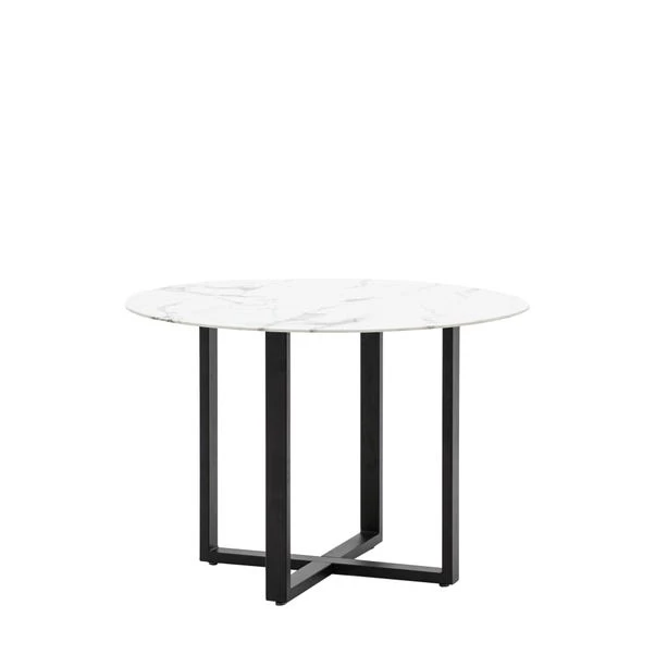 Add a touch of dramatic modern luxury to your dining space with the Carlisle Dining Table. With an eye catching faux marble glass top and bold black crossover legs, this dining table will make a statement. Perfect for a smaller spaces where you still want to make a impact, the table seats 4.