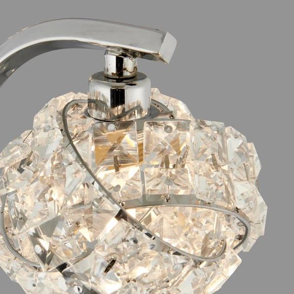 Made in a stylish and elegant design, this three light floor is perfect for adding some glitz and glamour to any room. With a unique and intertwined design, this lamp is made from glass and steel with a chrome effect finish and is compatible with LED lamps.