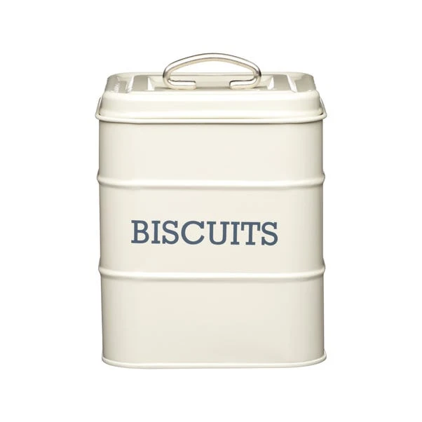 This antique styled vintage biscuit tin with riveted brushed steel handle, is perfect for maximising your worktop space and keeping your kitchen neat and tidy. Part of the vintage Living Nostalgia collection this biscuit tin features beautifully printed exterior text. This tin is easy to clean and matching bread bins are also available.