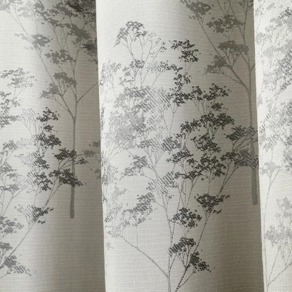A subtle metallic sheen gives this heavyweight jacquard fabric a quality, contemporary feel. With its natural stone coloured woven background and fine silver foliage detailing, this pair of curtains will bring a real texture and depth to a range of interior layouts. It is finished with a chrome eyelet heading allowing for easy installation and a full, undulating drape, and is fully lined for improved insulation and light filtration. A matching cushion is also available, making it easier to create a stylish, coordinated look.