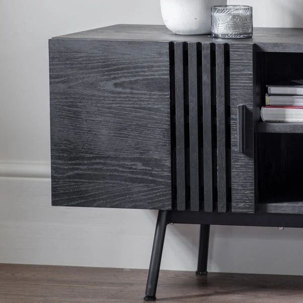 Not only will this unit hold your TV, but it also has a lot of extra storage space. The doors have a slatted design which can help create depth in your living room. Full assembly is required, but do not worry! Assembly is easy and all the tools you will need are supplied. Coordinating furniture pieces are available in the Englewood range.
