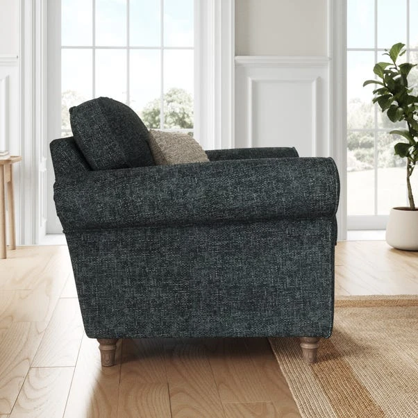 With its gracefully curved arms and robust wooden feet, this armchair embodies a timeless allure that effortlessly enriches any living space. Available in a range of distinctive hues, the chunky chenille upholstery is accentuated by tasteful piping detail, adding a refined touch. Enhanced with freshly filled foam cushions, it promises unparalleled comfort and enduring support.