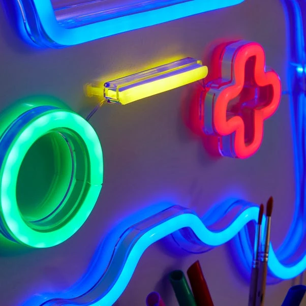 Brighten up your gaming room with this vibrant, multicoloured game controller neon wall light. Easy to attach to the wall with two pre-drilled holes and powered by an included USB cable, it adds a fun, playful touch to any gamer’s space.