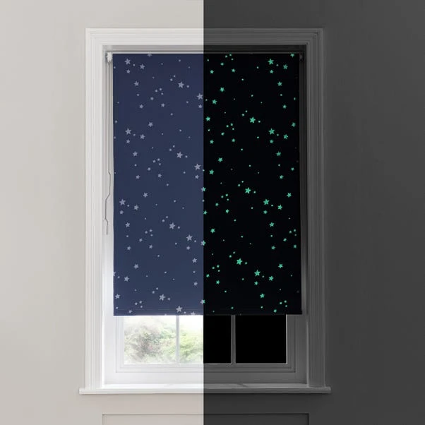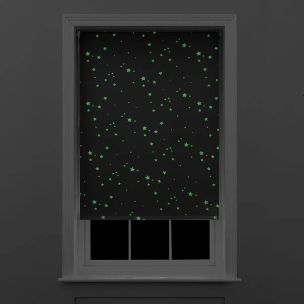 Fashioned with a glow in the dark star pattern, this cordless blackout roller blind will bring a touch of magic to any room by inviting the night sky into your home when the sun goes down. The quality blackout coating prevents unwanted external light from entering your home while improving privacy. Perfect for homes with children and pets, this roller blind is designed with a cordless twist safe mechanism for added peace of mind and simple operation. This charming blind is available in a variety of widths and can be cut to size to suit your requirements. Supplied with all fixings included. To enhance the blackout capabilities please fit on the outside of the window recess.