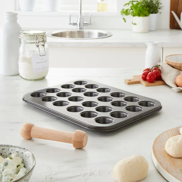 Indulge your sweet tooth with our heavy-duty 24-hole mini dessert tin. The double non-stick coating and loose bases ensure easy release for mini cakes, cheesecakes, and muffins. Freezer, fridge, and dishwasher safe, this tin is a baking must-have. With a 20-year guarantee, create delightful treats with confidence.