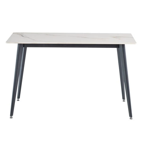Make a statement with this one-of-a-kind rectangular dining table. The sintered stone table top is scratch, heat, and water resistant and made to stand out no matter where it goes. The black metal legs have adjustable floor protectors for easy levelling. Seats up to 4 people comfortably—so bring all of your adoring friends over to sit at this magnificent table.