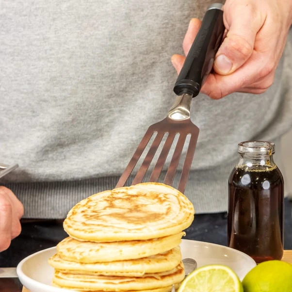 Great for flipping and serving your food, this turner effortlessly slides under your food. Made from rust resistant stainless steel, this turner is made to last. Each tool has a comfortable, glossy coloured handle that helps you smoothly operate the utensil. The stainless steel KitchenAid tools are easy to clean as they are dishwasher safe.