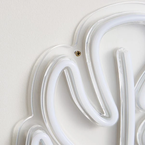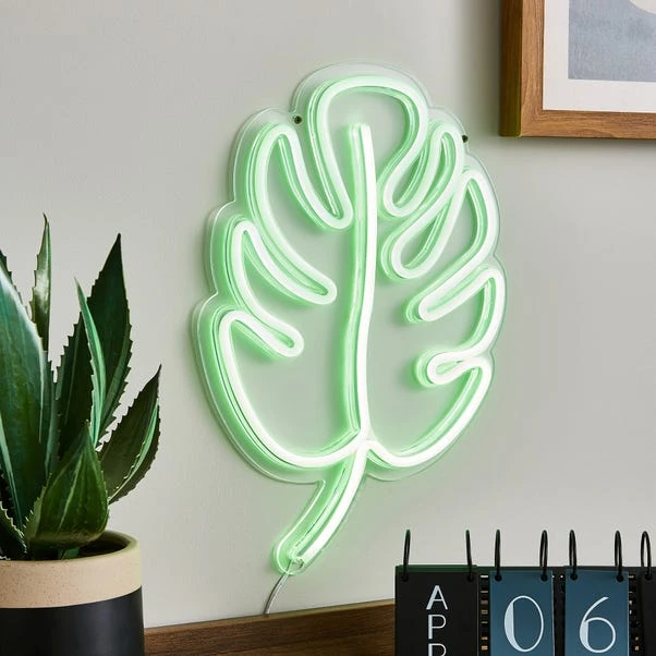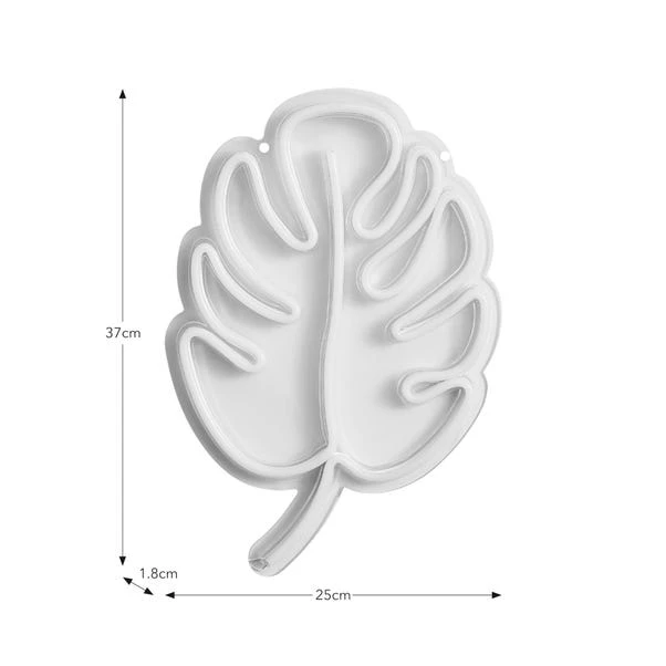 Embrace a modern tropical feel with the Leaf Neon Wall Light for a fun filled home decor. Its silhouette leaf shape, crafted from clear acrylic with green light, adds a vibrant touch to your decor. The wall light comes with a USB cable for convenience and is available in various other shapes. Illuminate your space with this eye-catching piece.