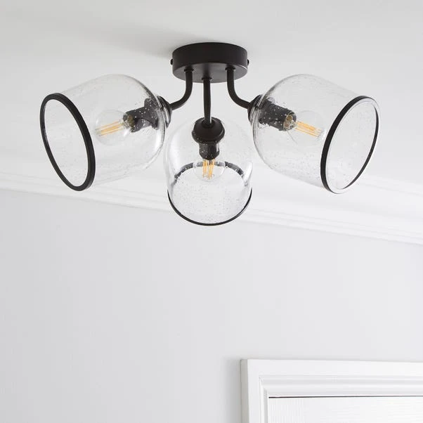 Introduce a contemporary element to your home décor with the stunning Lenny 3 Light Semi Flush Ceiling Fitting, featuring three bubble detailed glass shades with a modern coloured edge. A perfect way to enhance your home décor with a stylish and trendy piece. This piece is dimmable compatible, making it both an attractive and practical product.