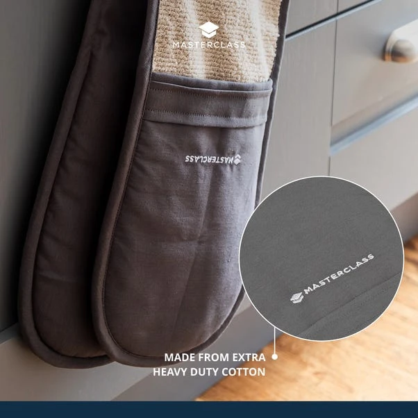 Protect your hands with the MasterClass Cotton Double Oven Glove. This premium oven glove features a multi-layered quilted design for maximum heat protection. With a safe grip and easy-to-clean properties, this oven glove is a reliable kitchen essential, backed by a five-year guarantee.