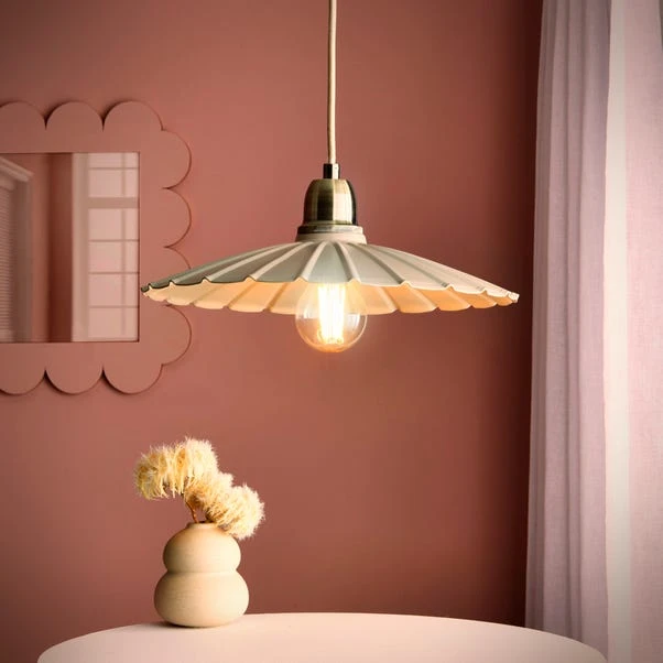 Add a touch of elegance to your home with the Maya Scallop Adjustable Pendant Light. Featuring a scalloped shade in a gorgeous mushroom colourway, it exudes timeless charm. With adjustable height, you can create the perfect ambience for any occasion.