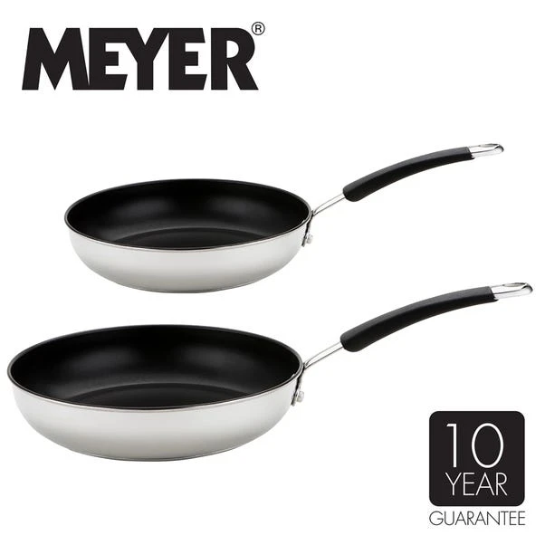 The stylish metallic exterior combined with a stainless steel base make this set of frying pans a perfect addition to every kitchen as it is suitable for all hob types including induction, gas, halogen, radiant ring, solid plate and ceramic. The base also provides fast and even heating for energy efficient cooking.Â