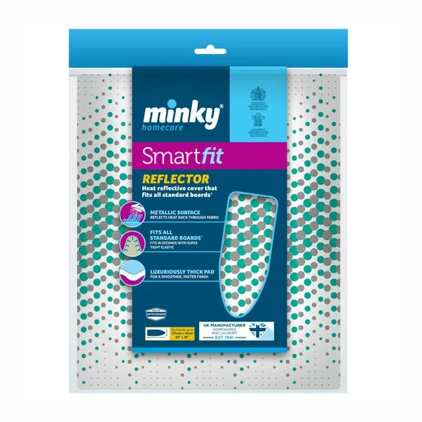 Fitting over most standard ironing boards with ease due to its snug elastic fitting, this 100% cotton purple Minky ironing board cover includes a thick felt pad for a smooth and fast finish and reflects heat to make ironing quick and efficient.