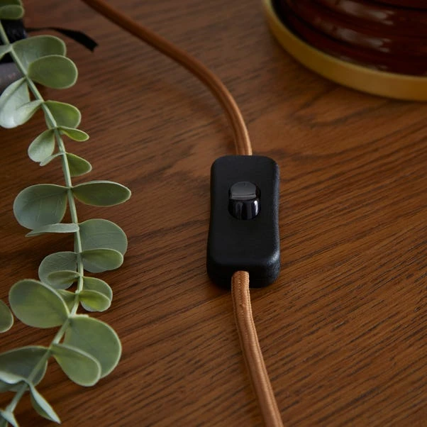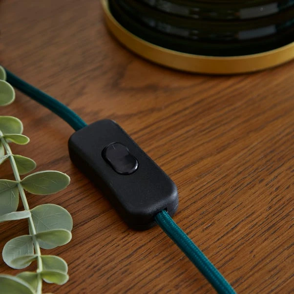With its unique, ribbed design, this table lamp is sure to make a statement in any living space. Made from durable glass, this piece comes complete with a complementary coloured flex and striking gold-effect trims.