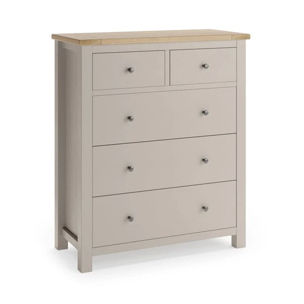 We know you have a lot of stuff to store. So we’ve made sure to give you plenty of room with this chest of drawers. Its five drawers give your clothes ample space to breathe and its brushed metal handle add a nice finishing touch.