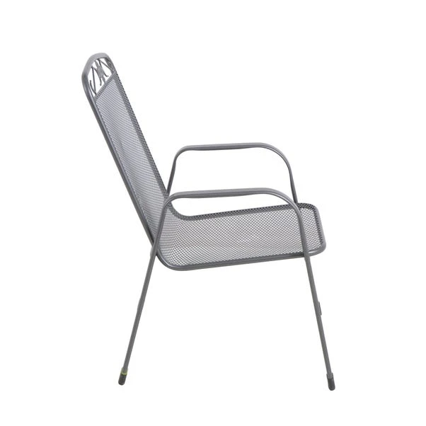 Create a stylish outdoor dining area with the Savoy Rectangular 6 Seater Dining Set. This set includes six chairs with a chic floral design and a dining table with a parasol hole. Constructed from durable steel with a Dark Grey finish, the set is designed to withstand the elements. The included cushions, in a modern grey and white stripe pattern, add extra comfort.