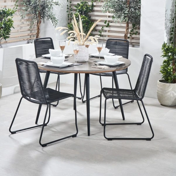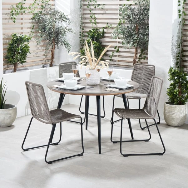 The Pang 4 Seater Garden Dining Set comfortably seats up to 4 people, offering a solid and robust outdoor dining solution. Crafted from responsibly sourced materials with a solution-dyed polyrope and a powder-coated steel frame, it provides both style and sustainability for your outdoor space.