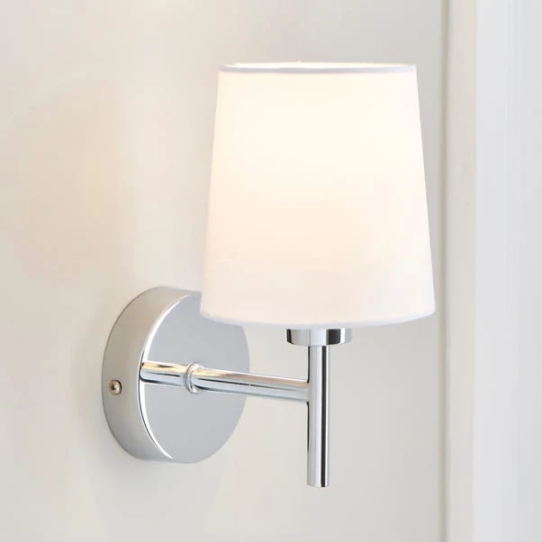 Enhance your space with the modern and sleek design of the Prescot Wall Light. The chrome finish adds a touch of sophistication, while the fabric shade softens the light for a warm and inviting ambience. This wall light is compatible with a dimmer switch, allowing you to adjust the lighting to suit your mood. Available in a range of colours, you can choose the perfect shade to complement your decor.