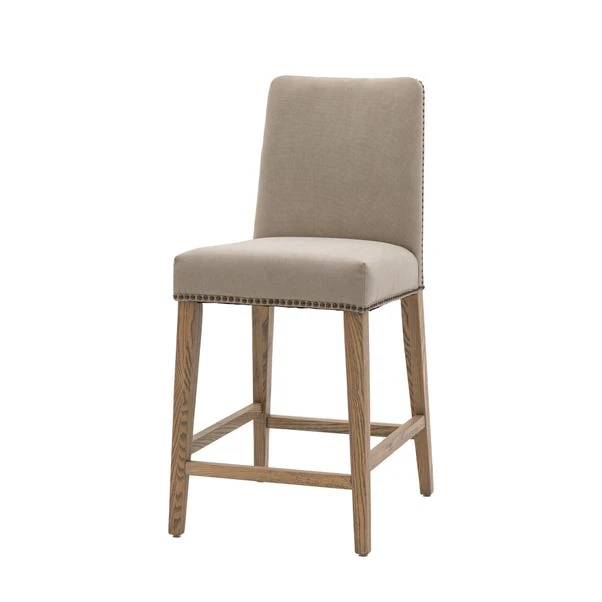 Do need somewhere to sit at your bar table or kitchen island? Why not add this chair into your home so you can sit in style. Finished with brass nail head details and simple angled legs, this upholstered chair will fit into your traditional or modern home environments.