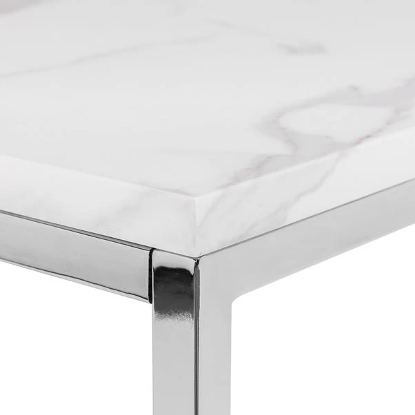 Add a touch of glamour to your home with the Scala console table. With its Italian inspired design, this stunning self-assembly console table is made with a white marble effect top coupled with chrome-plated steel legs for added style and durability.