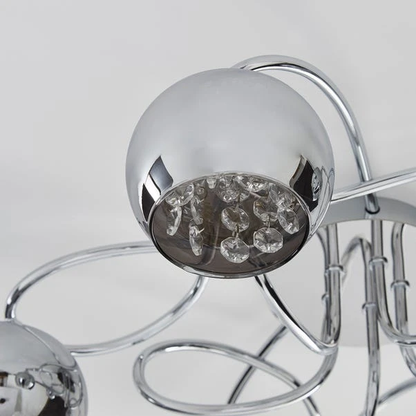 Featuring five ombre glass bauble shades designed with delicate clear glass droplets, the Seychelles ceiling fitting would make a glamorous addition to any room. This beautifuly crafted fitting is made with a beautiful woven arm frame with a sleek chrome effect finish, and available with a choice of shade colour options.