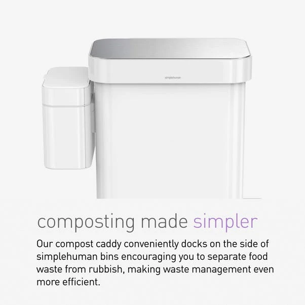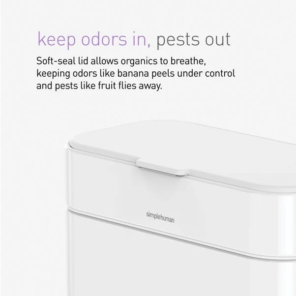 Make composting a cinch with our Simple Human White Compost Caddy. Minimize odors and pests with its soft-seal lid, while the removable inner bucket ensures easy cleaning. Plus, get a head start with our included pack of custom fit compostable liners.