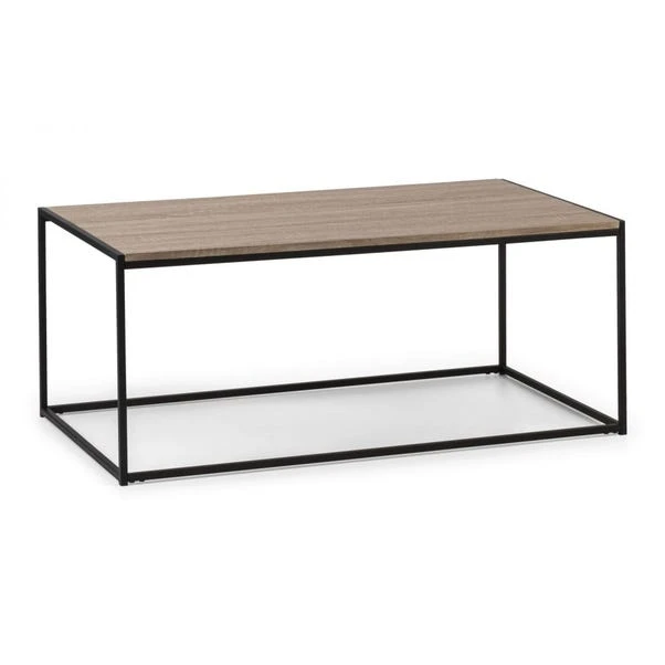 Add a contemporary touch to your home with the Tribeca Coffee Table. It features simple, clean lines and a black coated metal frame perfectly complemented by sonoma oak foil to create a stylish and sleek product. Its strong and durable construction ensures that it will last for many years to come.