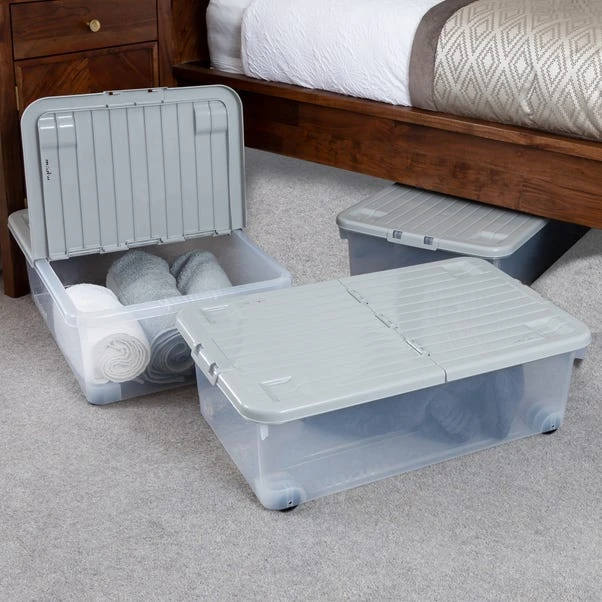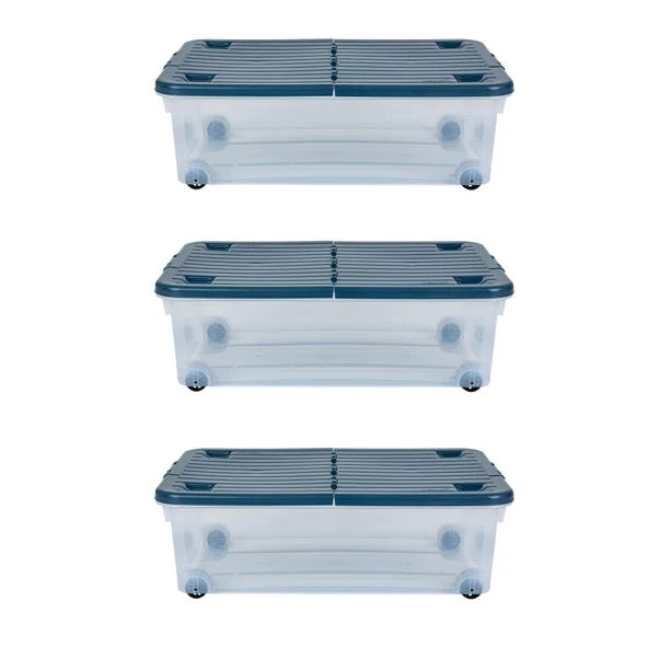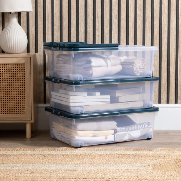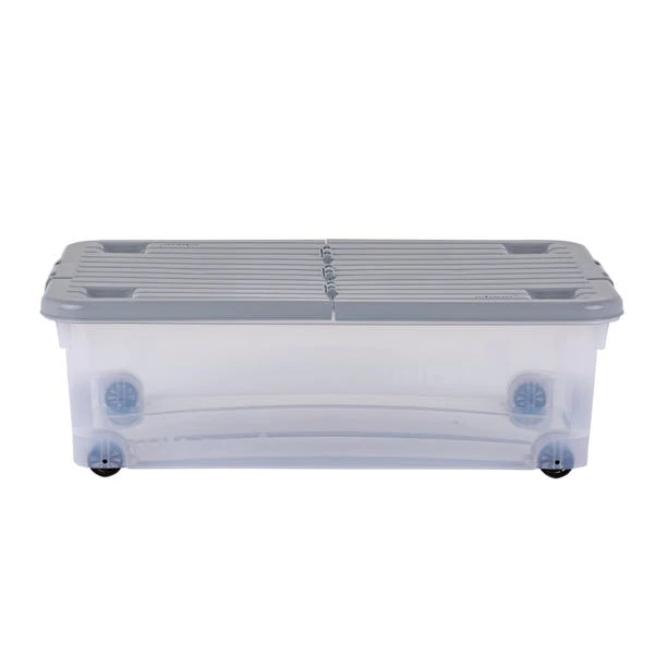 Experience the convenience and practicality of Wham’s Wheeled Storage Boxes and store all your essentials in one place with the generous 32 litre capacity. Featuring a clip-on lid that folds allowing easy access to your belongings, the split lid design also enables you to access specific items without disturbing the rest of the contents. Designed with double wheels, the storage boxes offer enhanced stability and strength, allowing you to easily move them around your home or workplace. The stackable design of these boxes provides an excellent space-saving solution, while the transparent view of contents ensures visibility so you can easily locate your desired items. When not in use, these boxes can be nested inside each other, providing a compact and easy-to-store solution.