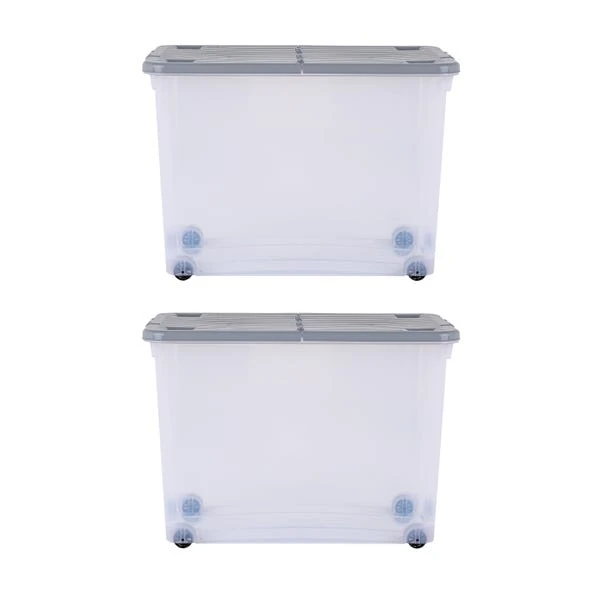 Experience the convenience and practicality of Wham’s Wheeled Storage Boxes to your home or workplace to store all your essentials in one place with a huge 80 litre capacity. Featuring a clip-on grey lid that folds allowing easy access to your belongings, the split lid design also enables you to access specific items without disturbing the rest of the contents. The double wheel design offers enhanced stability and strength, allowing you to easily move them around your home or workplace. A stackable design provides an excellent space-saving solution, while the transparent view of contents ensures visibility so you can easily locate your desired items. When not in use, these boxes can be nested inside each other, providing a compact and easy-to-store solution.
