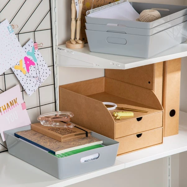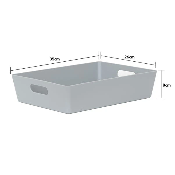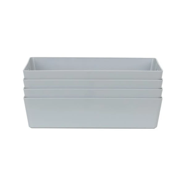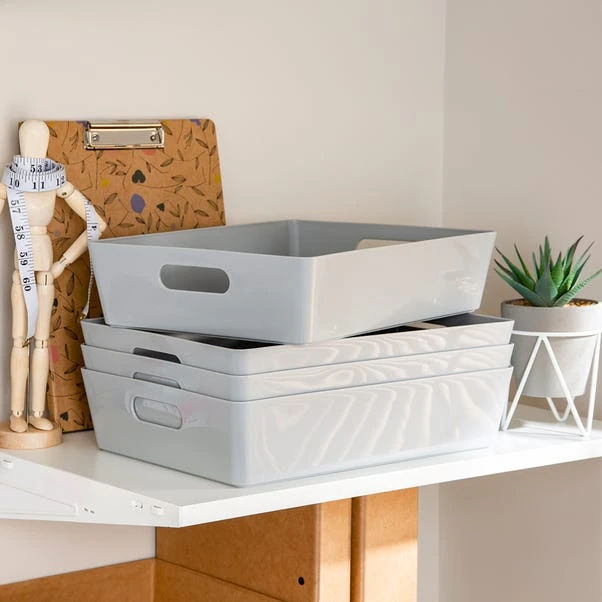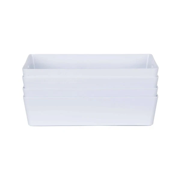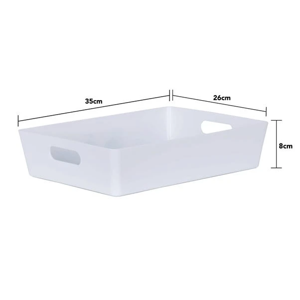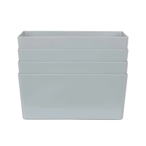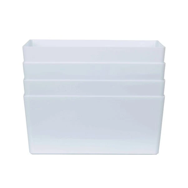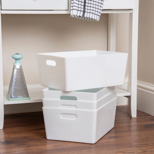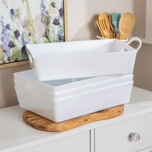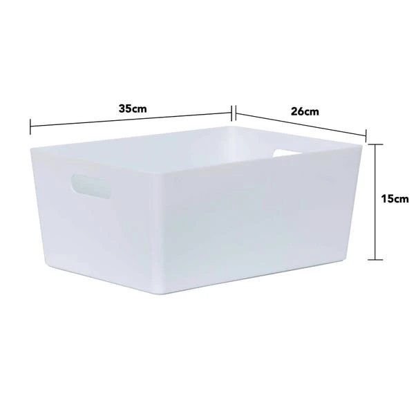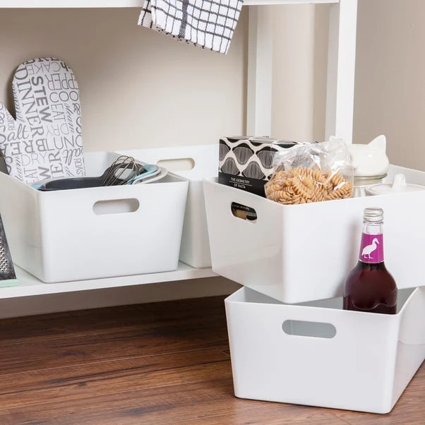 Rely on Wham’s simple and efficient storage baskets to organise your cupboards and shelves in style. This set of 4 storage baskets feature a sleek gloss finish that will add a touch of contemporary touch to any space as well as easy wipeable qualities. With a rectangular shape, they can be used for a wide range of purposes, from storing craft accessories and cosmetics to organising cleaning supplies in bathrooms, pantries and laundry rooms. Designed with integral handles, you can effortlessly hold and move them around as needed.