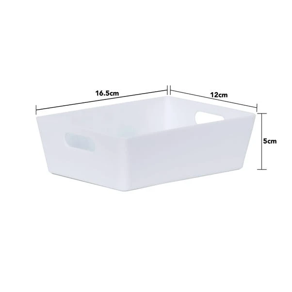 Organise your space in style with Wham’s simple and efficient storage solution, perfect for creating a consistent and ordered look. This set of 5 storage baskets feature a sleek gloss finish that will add a touch of contemporary touch to any space as well as easy wipeable qualities. They can be used for a wide range of purposes, from storing craft accessories and cosmetics to organising cleaning supplies in bathrooms, pantries and laundry rooms. Designed with integral handles, you can effortlessly hold and move them around as needed.