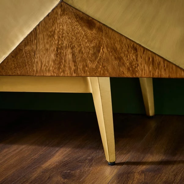 Crafted from premium mango wood, this TV unit highlights the natural variations of the material, making each piece unique. This TV unit showcases exquisite brass detailing that exudes sophistication and charm.